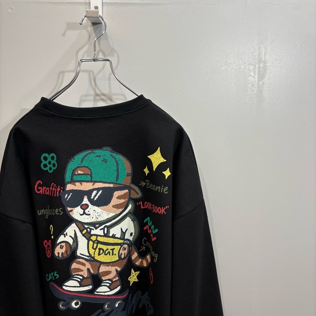 【253658-2】Light Cat Back print Sweatshirt / 24/7TOKYO / ライト ネコ 背面プリント スウェット