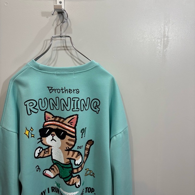 【VT-02160-1】Running Cat Back print Sweatshirt / 24/7 TOKYO / ランニング 猫 背面プリント スウェット