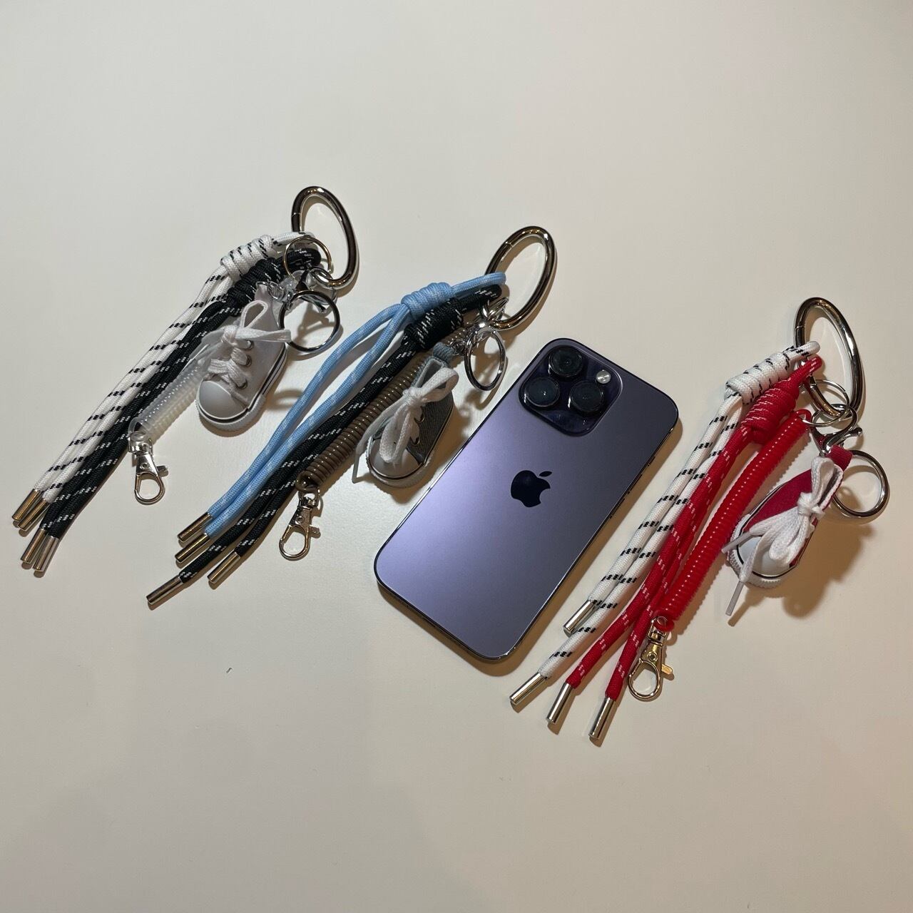 全長 27cm(カラビナ含む) / スニーカー 5cm ※画像5枚目 iPhone14Proと比較