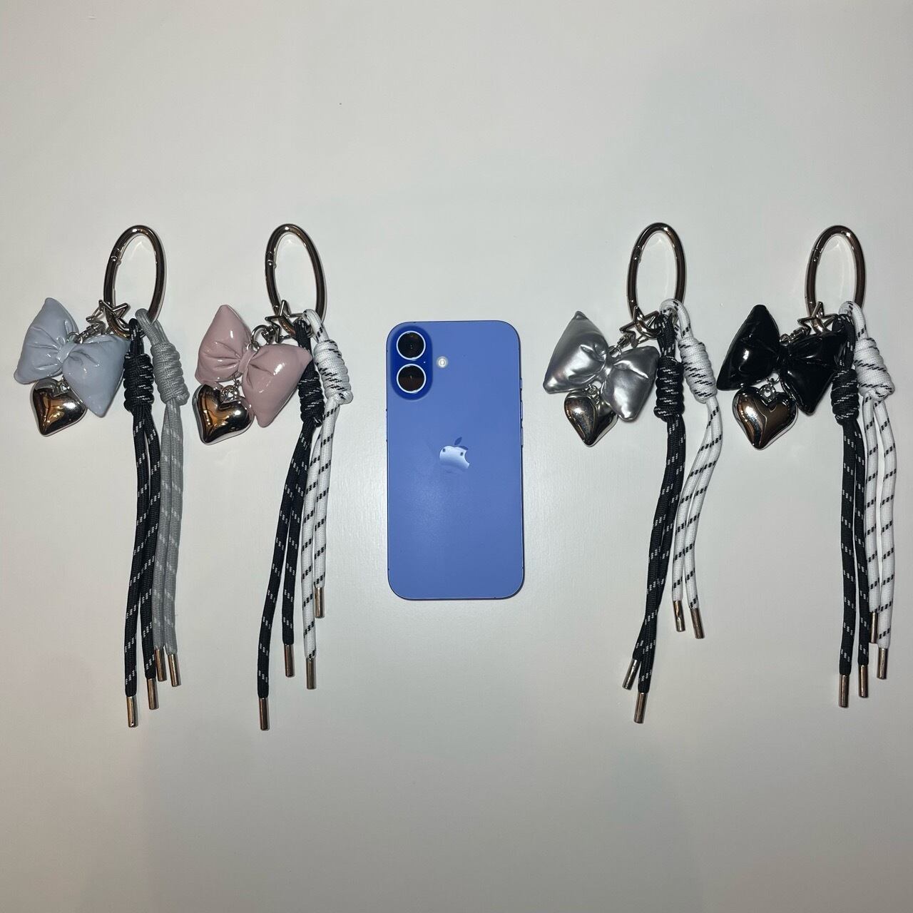 全長 27cm(カラビナ含む) / リボン-ハート部分 8.5cm ※画像3枚目 iPhone16と比較