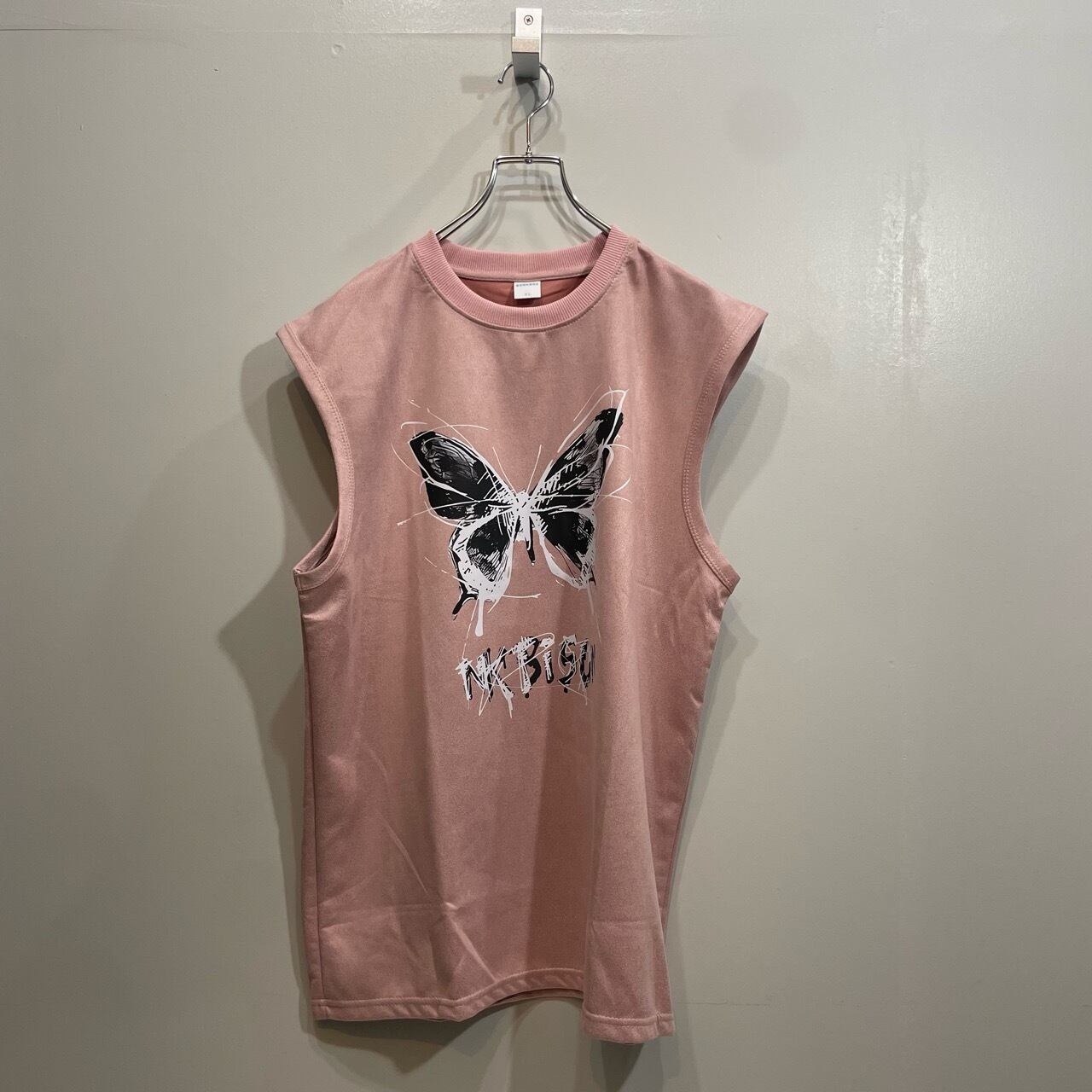 【2025-44-45】Butterfly Front print Non-woven fabric texture tank top / 24/7TOKYO / バタフライ 前面プリント 不織布素材感 タンク