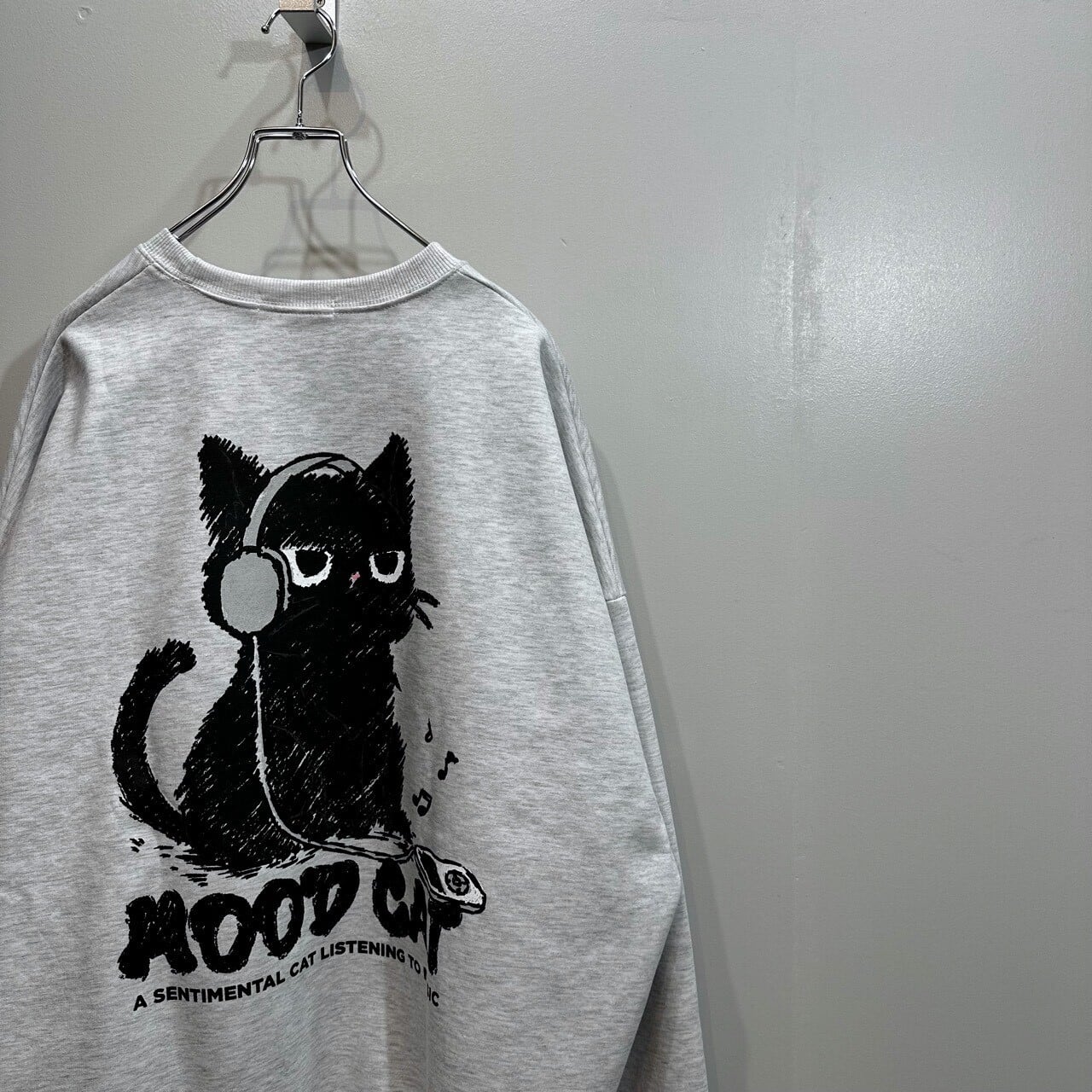 【253839-3】MOOD BLACK CAT Back Print Sweatshirt / 24/7TOKYO / ムード 黒猫 背面プリント スウェット