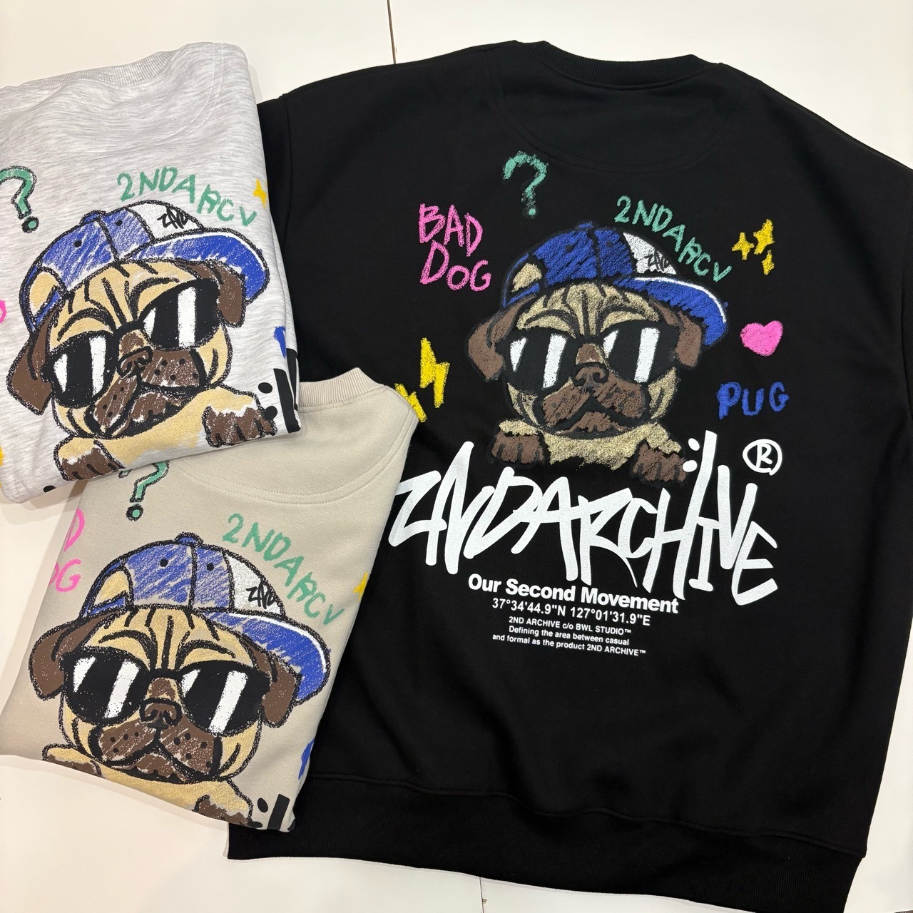 ITEM NAME【2ND ARCHIVE / Crayon Bad Dog Pug Crew Neck Sweatshirt / 24/7TOKYO / クレヨン バッドドッグ パグ クルーネック スウェット】