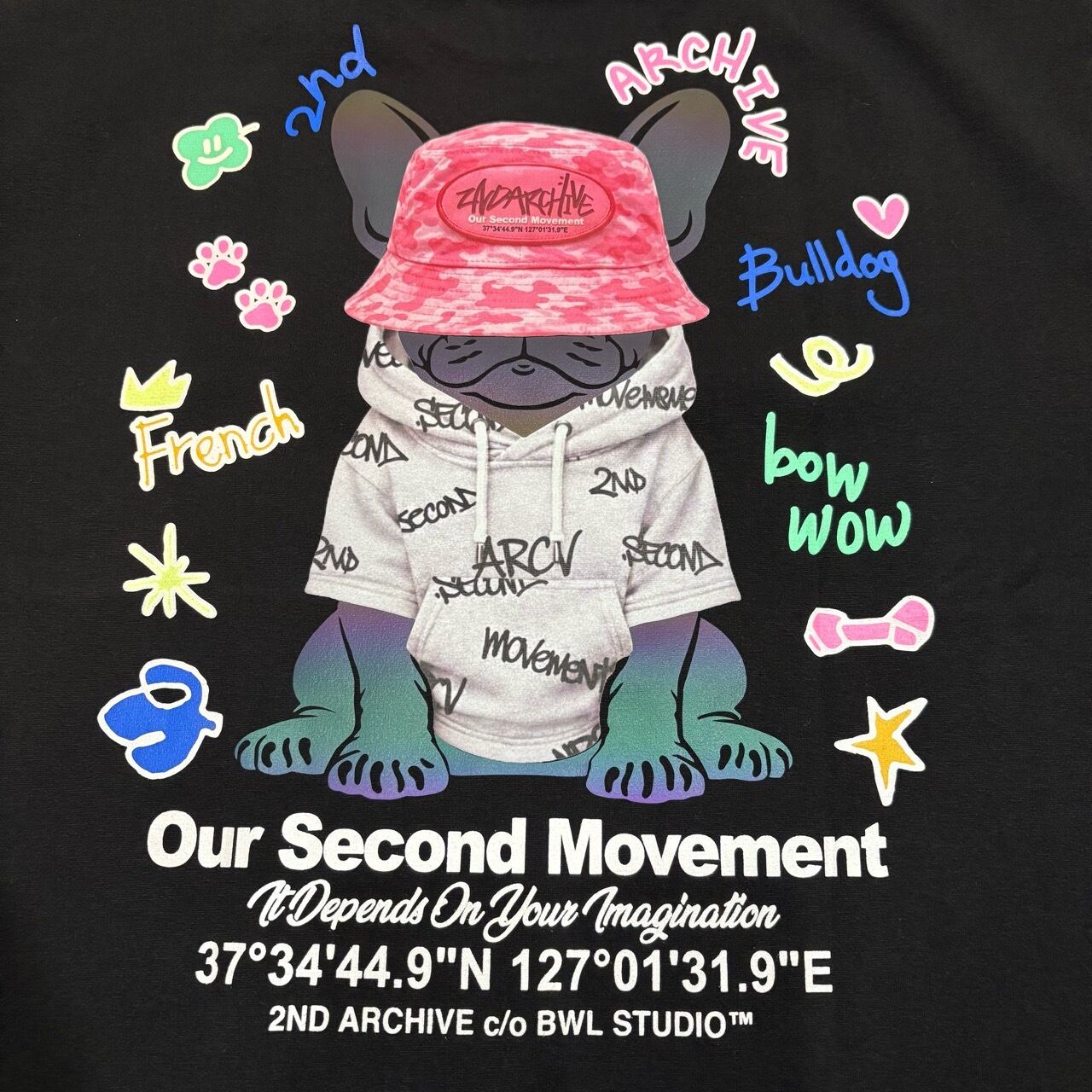 ITEM NAME【2ND ARCHIVE / Rainbow Hologram Bucket Hat and Bulldog T-Shirt / 24/7TOKYO / レインボー ホログラム バケットハット ブルドッグ Tシャツ】