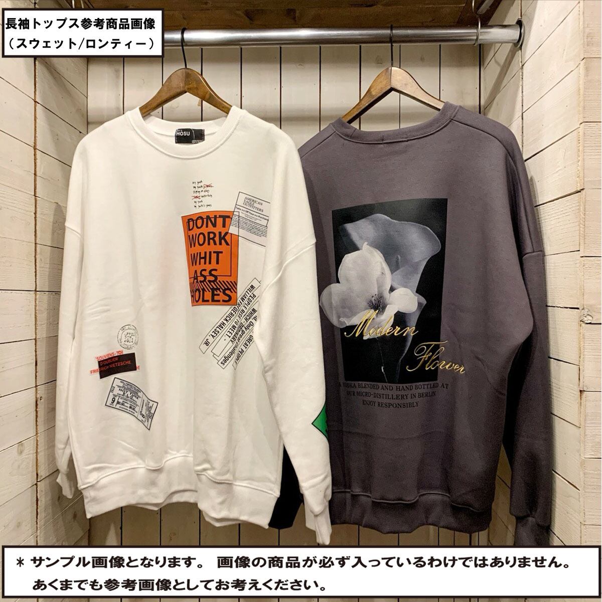 (例:スウェット・ロンティー・パーカー・カーディガン・ニットなど)