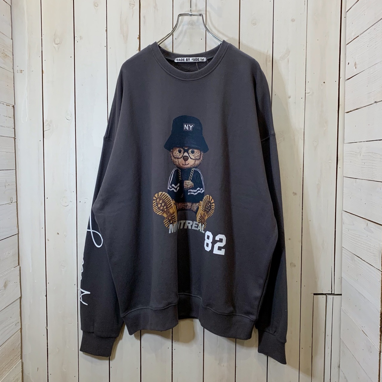 ITEM NAME【82 HIP HOP BEAR PRINT CREW NECK SWEAT / 82 ヒップホップ ベア プリント クルーネック スウェット】