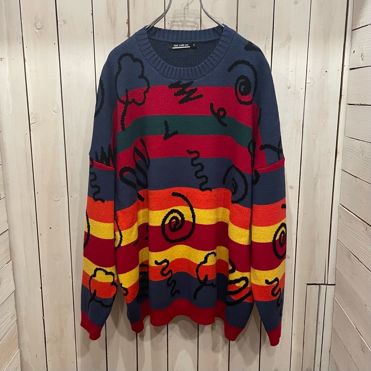 ITEM NAME【Multi-border graffiti crew neck knit sweater / マルチボーダー 落書き クルーネック ニット セーター】