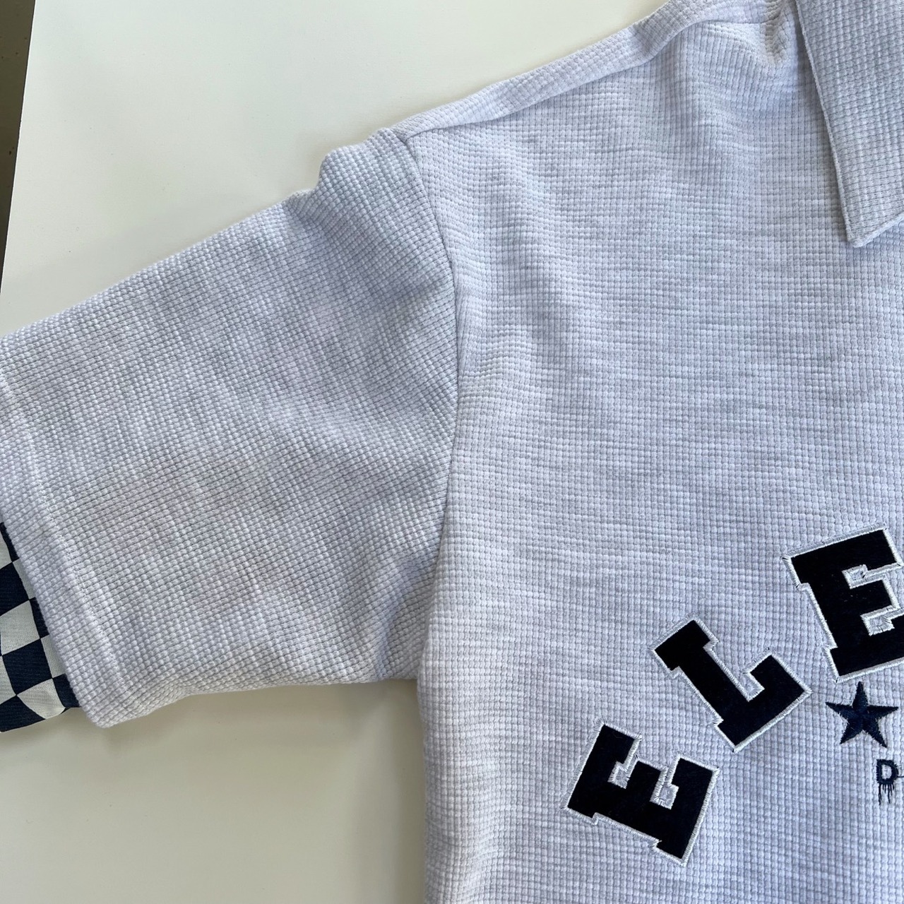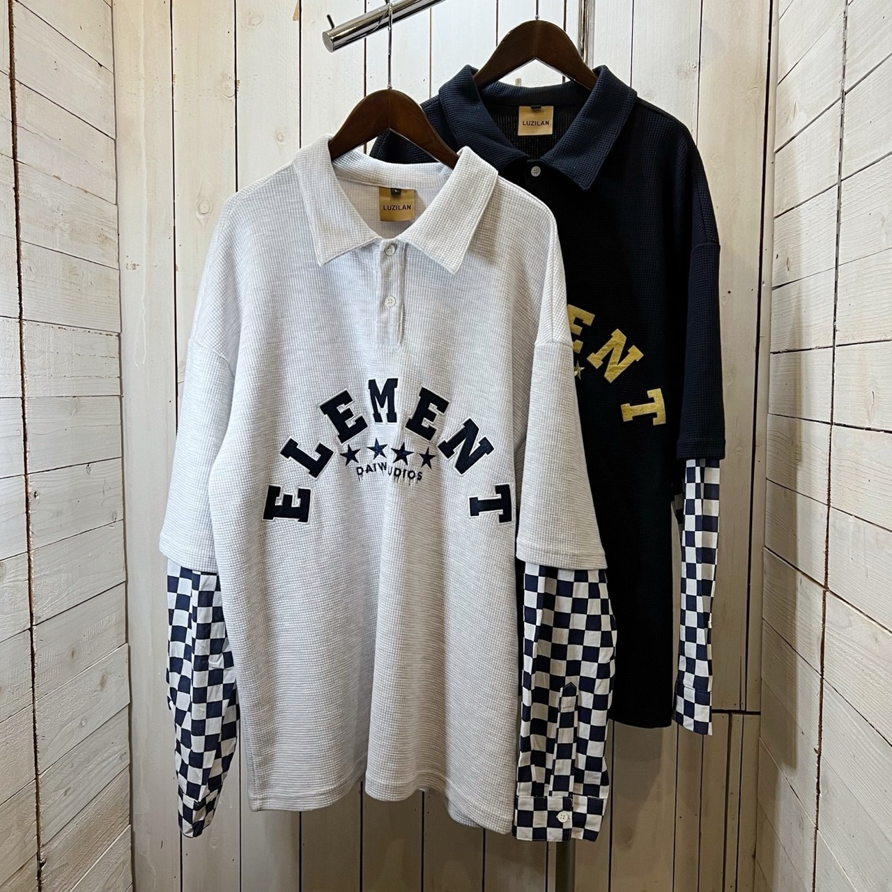 ITEM NAME【sleeve Block check switching Over size Polo shirt / 袖 ブロックチェック 切替 オバーサイズ ポロシャツ 韓国 ストリートファッション】