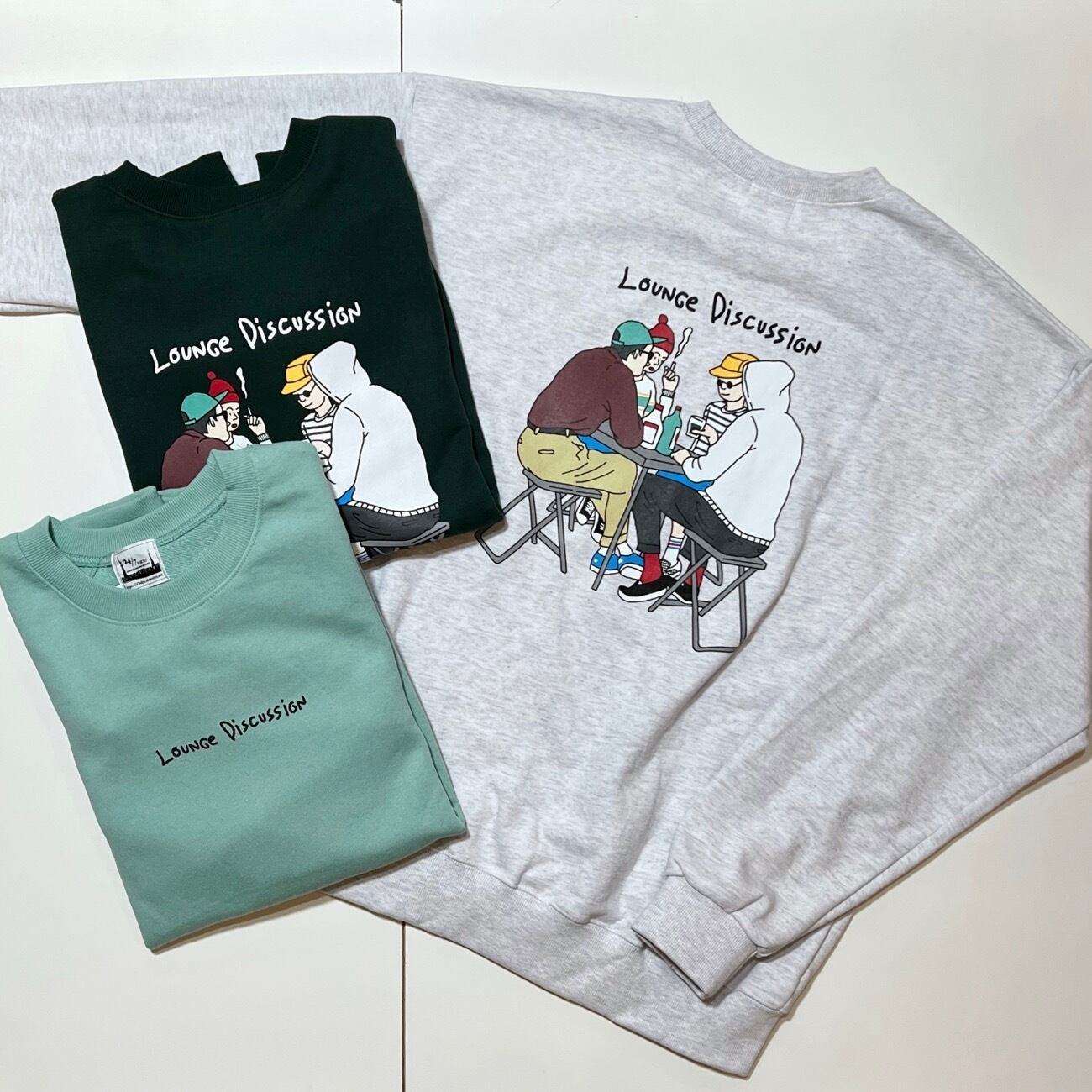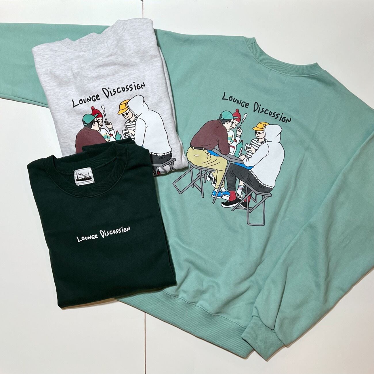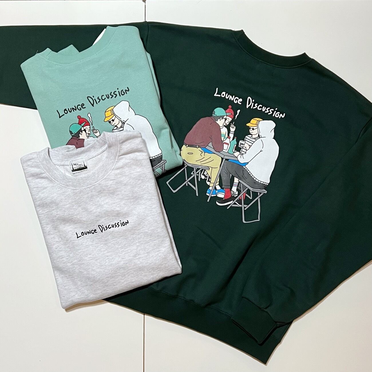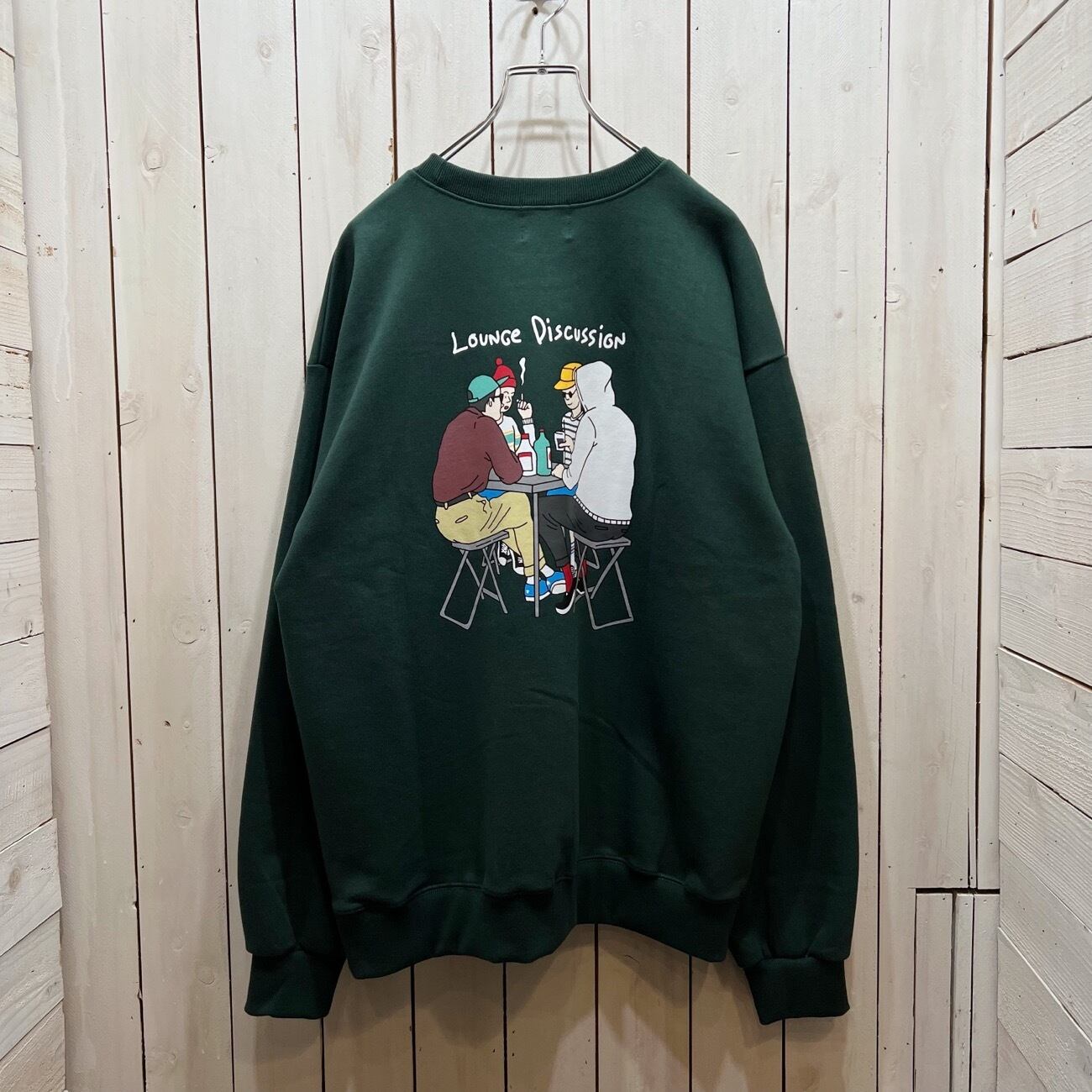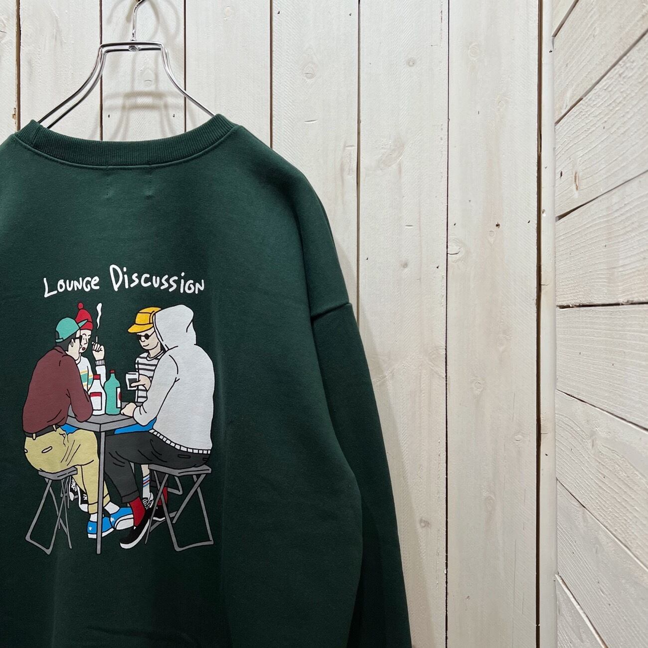 ITEM NAME【Lounge discussion logo & back print crew neck sweat / 24/7 TOKYO / ラウンジ ディスカッション ロゴ&バックプリント クルーネック スウェット】