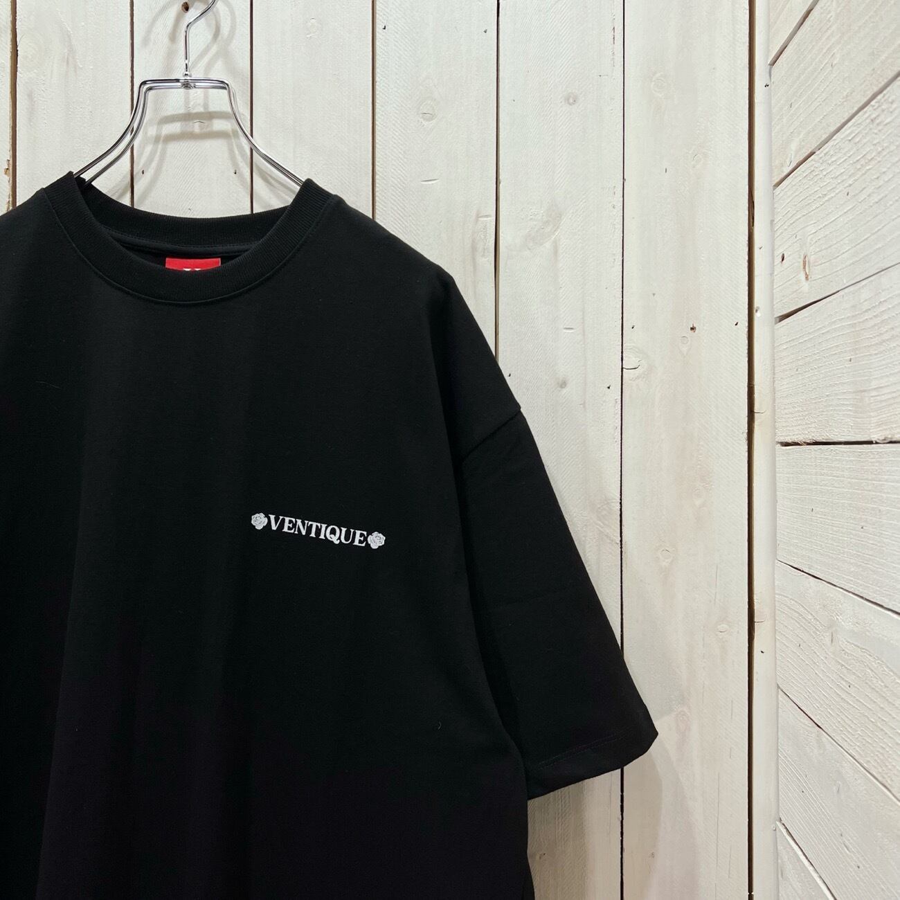 【VT-01255-2】VENTIQUE Square □■ Monochrome Rose T-shirt / ベンティーク スクエア □■ モノクロ ローズ T-シャツ