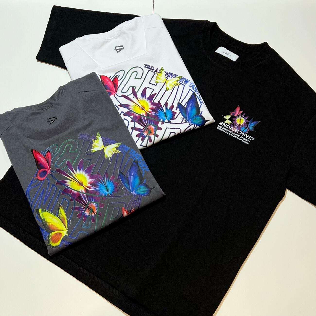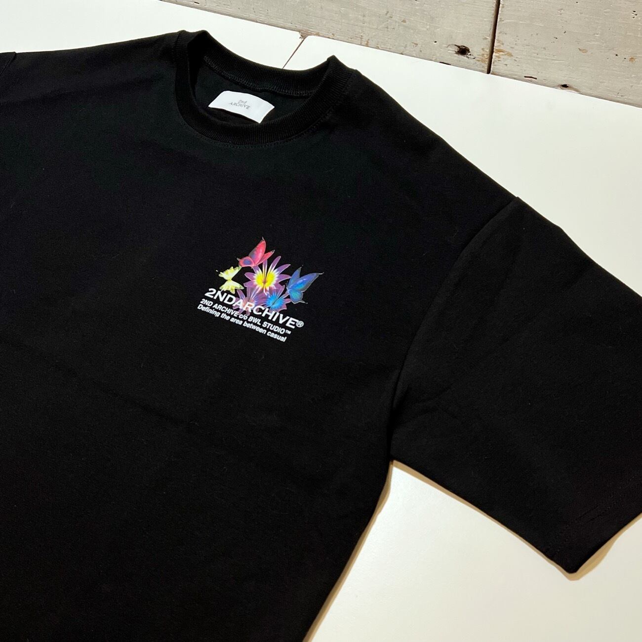 ITEM NAME【Colorful Butterfly & Circle Logo T-Shirt / 2ND ARCHIVE / カラフル バタフライ & サークルロゴ T-シャツ】