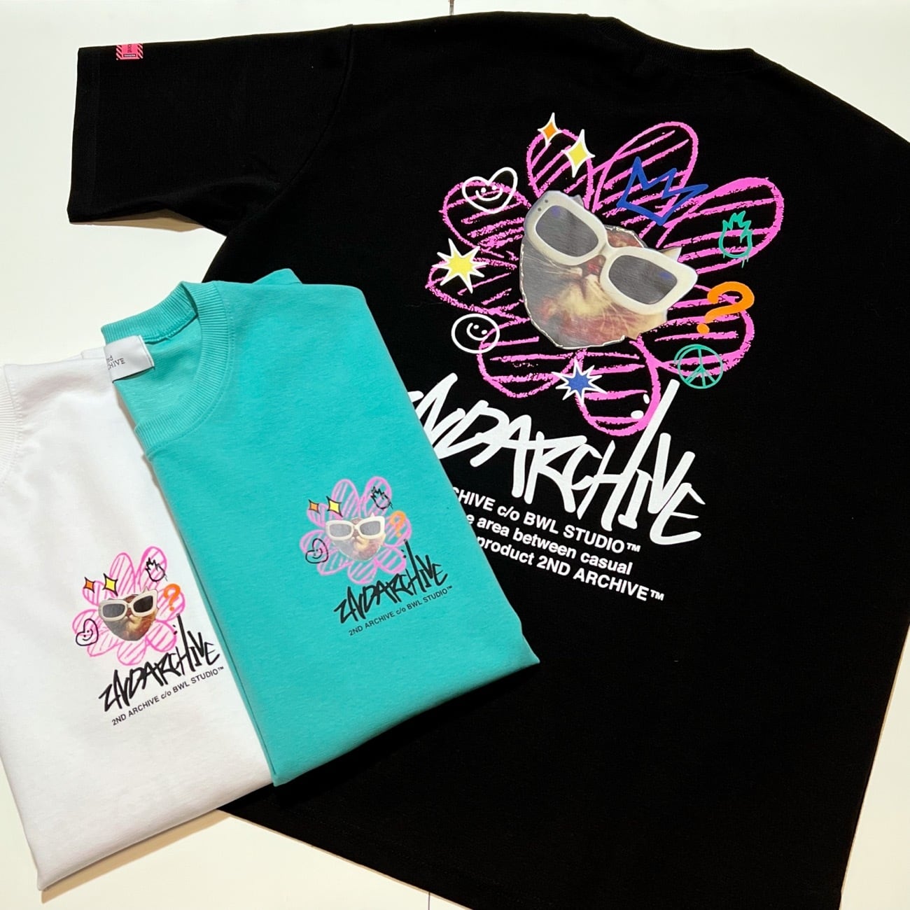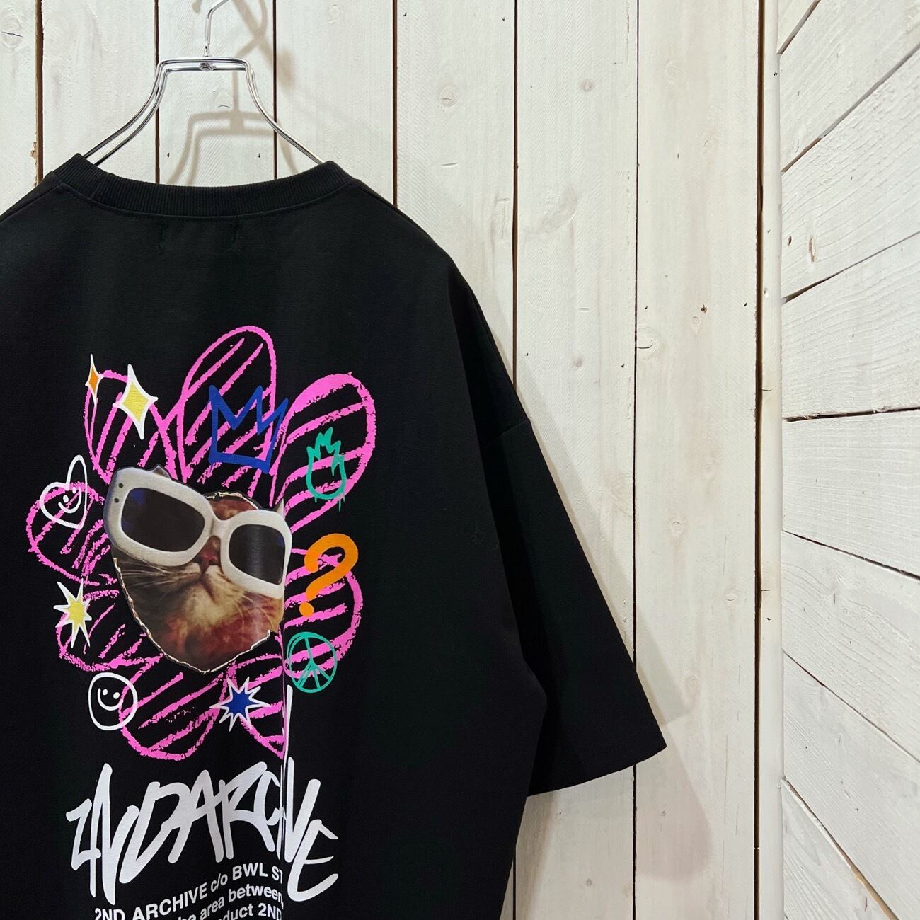 ITEM NAME【Graffiti Flower & Cat T-shirt / 2ND ARCHIVE / 落書きフラワー&ネコ T-シャツ】
